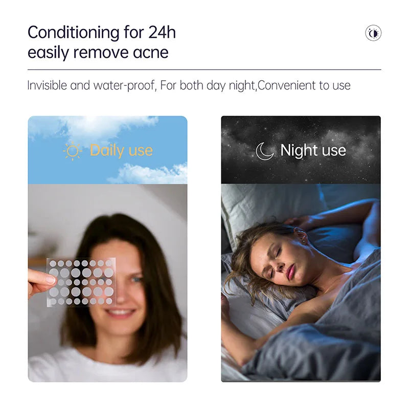 Effective Acne Care: Our patches provide 24-hour protection, reducing redness and preventing acne from worsening. They create a barrier against irritants and germs, speeding up recovery and preventing scarring.